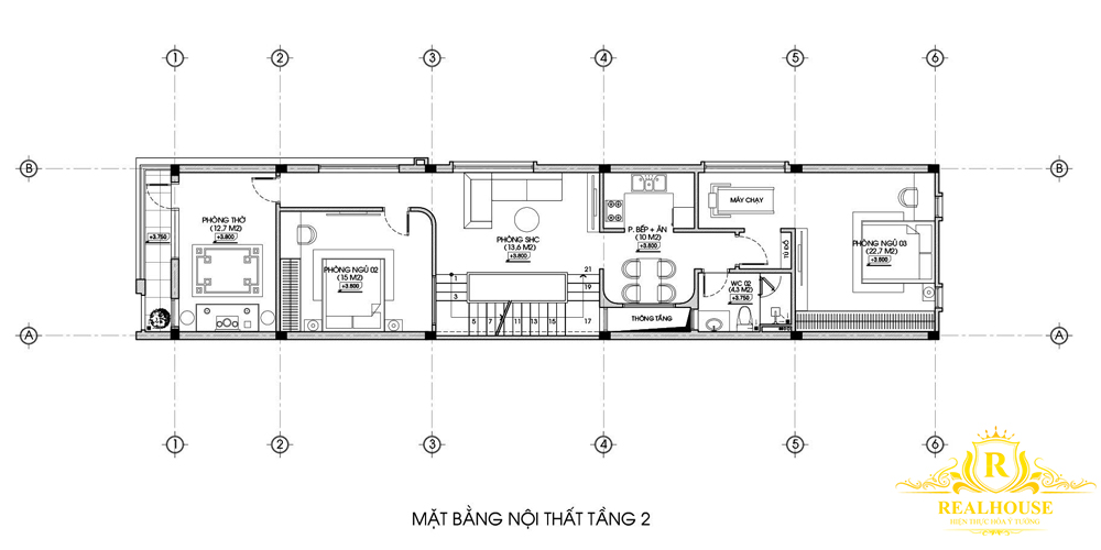Các kiến trúc sư Real House đã bắt đầu với khảo sát kỹ hiện trạng, phân tích thói quen sinh hoạt và nhu cầu sử dụng của từng thành viên. Thay vì chia nhỏ không gian theo chiều ngang, Real House lựa chọn giải pháp phát triển không gian theo chiều cao, khai thác tối đa từng mét vuông sàn. Mỗi tầng được xác định rõ chức năng, hạn chế tối đa diện tích giao thông nhưng vẫn đảm bảo sự thông thoáng và kết nối.
