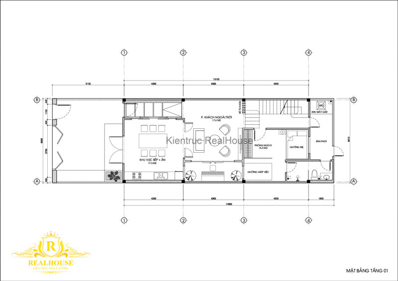 Toàn bộ bố trí công năng do Real House thực hiện không chỉ tối ưu hóa không gian mà còn đảm bảo sự lưu thông, tiện nghi, ánh sáng và thông gió, mang đến một tổ ấm hiện đại, thoáng đãng và tiện dụng cho gia đình chị Linh.
